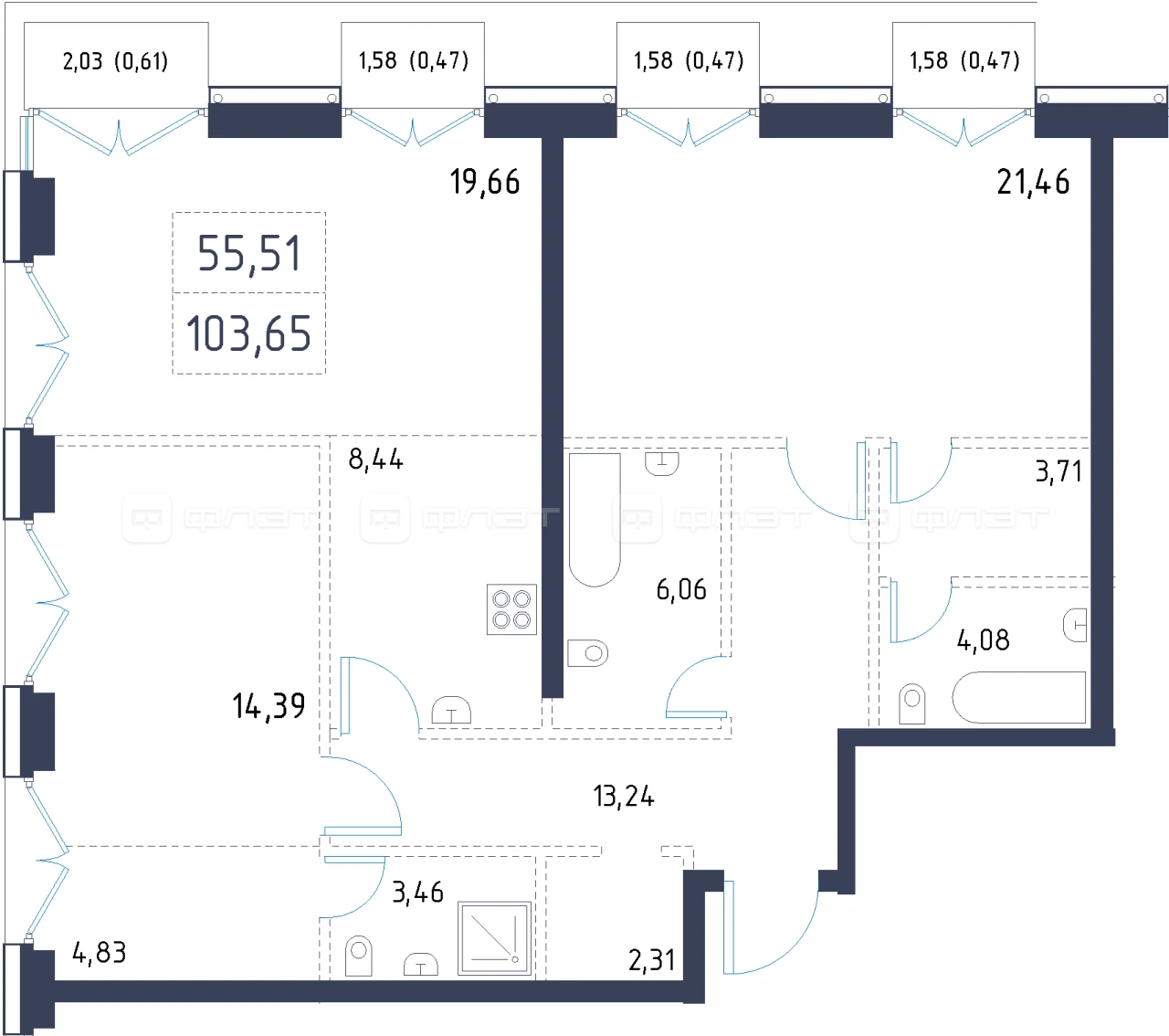 - 103.65/55.51/8.44 м²